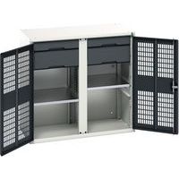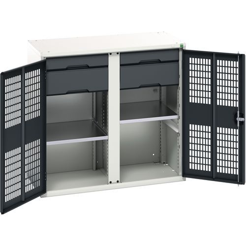 Metalowa szafka konserwacyjna Bott Verso, drzwiczki druciane, 100 x 105 x 55 cm, 2 półki, 4 szuflady Metalowa szafka konserwacyjna Bott Verso, drzwiczki druciane, 100 x 105 x 55 cm, 2 półki, 4 szuflady