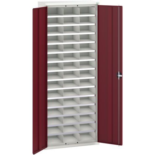 Metalowa szafka warsztatowa Bott Verso z przegródkami, 200 x 80 x 35 cm, 45 przegródek, szaro-czerwona