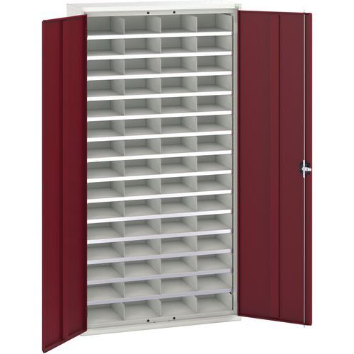 Metalowa szafka warsztatowa Bott Verso z przegródkami, 200 x 105 x 35 cm, 60 przegródek, szaro-czerwona