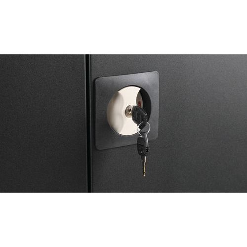 Szafy blaszane na segregatory, ze wzmocnionymi drzwiami skrzydłowymi.