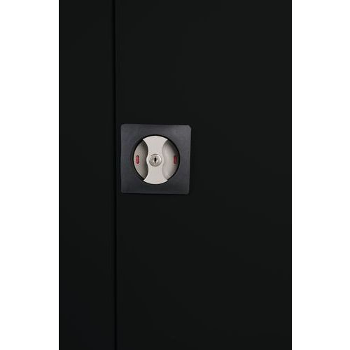 Szafy spawane blaszane na segregatory, ze wzmocnionymi drzwiami skrzydłowymi. Ukryte zawiasy 180° z ochroną przed hałasem. Szafy zamykane na klucz na zamek cylindryczny. Półki przestawne w siatce otworów. Możliwość dokupienia dodatkowych półek. Zalecenia dotyczące bezpieczeństwa:Meble ustawić na prostej i płaskiej powierzchni. Przytwierdzić go do ściany lub poprzeczki za pomocą odpowiedniego mocowania. Dbać o prawidłowe rozmieszczenie obciążenia i nie przekraczać maksymalnego dopuszczalnego obciążenia.