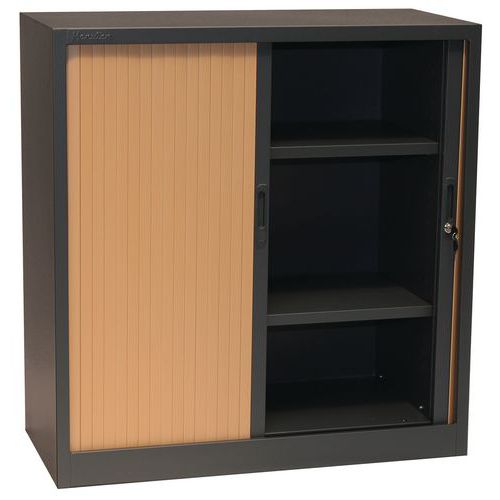 Metalowa szafa aktowa z roletą Manutan Expert, 2 półki, 105 x 100 x 45,7 cm, antracyt/buk