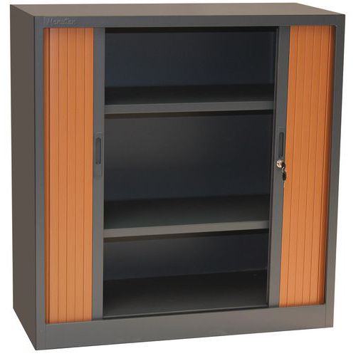 Metalowa szafa aktowa z roletą Manutan Expert, 2 półki, 105 x 100 x 45,7 cm, antracyt/czereśnia