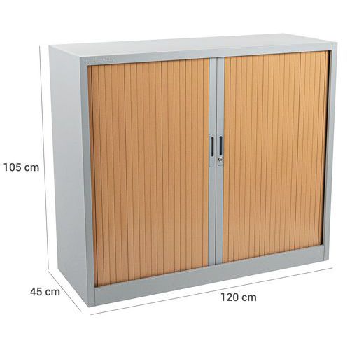 Metalowa szafa aktowa z roletą Manutan Expert, 2 półki, 105 x 120 x 45,7 cm, szary/buk