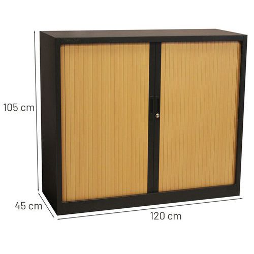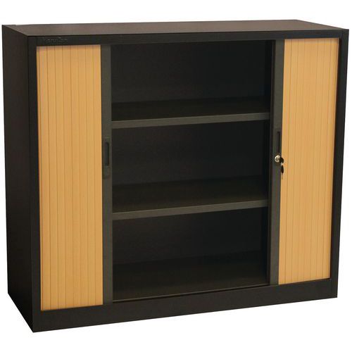 Metalowa szafa aktowa z roletą Manutan Expert, 2 półki, 105 x 120 x 45,7 cm, antracyt/buk