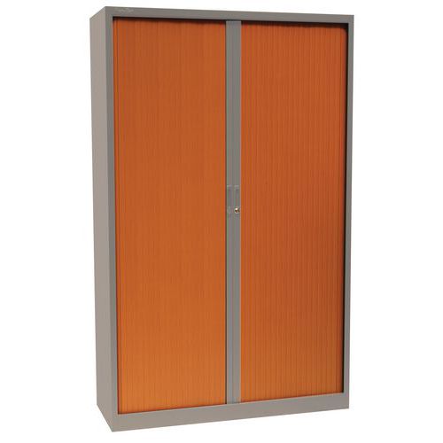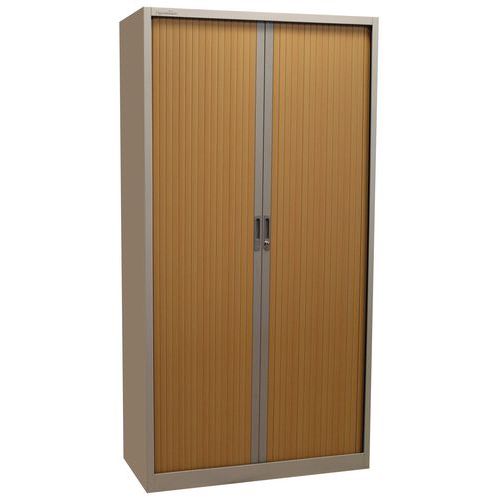 Szafa z czterema półkami przestawnymi i plastikowymi roletami, które można w całości wsunąć do ścian bocznych.