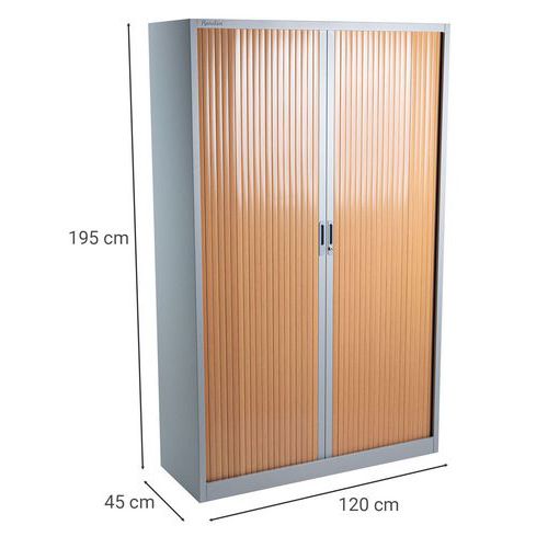Metalowa szafa aktowa z roletą Manutan Expert, 4 półki, 195 x 120 x 45 cm, szary/buk