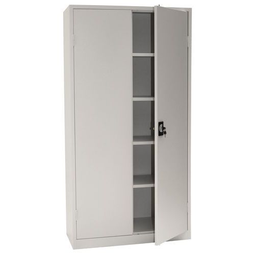 Wysoka szafa aktowa Manutan Expert 2000 zapewnia optymalną przestrzeń do przechowywania segregatorów, akt i innych dokumentów biurowych. Podwójne drzwi wyposażone w amortyzator z zawiasami zewnętrznymi, umożliwiają rozwarcie do 180°. Odpowiednią przestrzeń na dokumenty zapewniają cztery półki przestawne. Możliwość umieszczenia wysuwanej listwy na segregatory zawieszane (brak w zestawie). Szafka zamykana na cylindryczny zamek trzypunktowy. Zamek jest wbudowany w rączkę. W celu zapewnienia wyższego bezpieczeństwa i stabilności istnieje możliwość przymocowania do ściany za pomocą przygotowanych otworów z tyłu szafy. Gwarancja producenta dla klienta : 10 lat