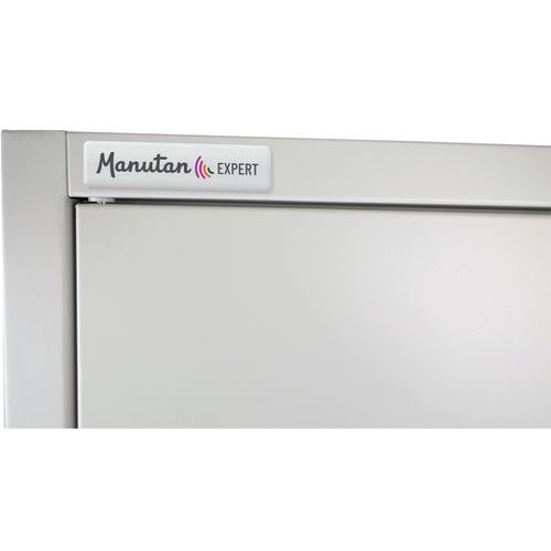 Wysoka szafa aktowa Manutan Expert 2000 zapewnia optymalną przestrzeń do przechowywania segregatorów, akt i innych dokumentów biurowych. Podwójne drzwi wyposażone w amortyzator z zawiasami zewnętrznymi, umożliwiają rozwarcie do 180°. Odpowiednią przestrzeń na dokumenty zapewniają cztery półki przestawne. Możliwość umieszczenia wysuwanej listwy na segregatory zawieszane (brak w zestawie). Szafka zamykana na cylindryczny zamek trzypunktowy. Zamek jest wbudowany w rączkę. W celu zapewnienia wyższego bezpieczeństwa i stabilności istnieje możliwość przymocowania do ściany za pomocą przygotowanych otworów z tyłu szafy.