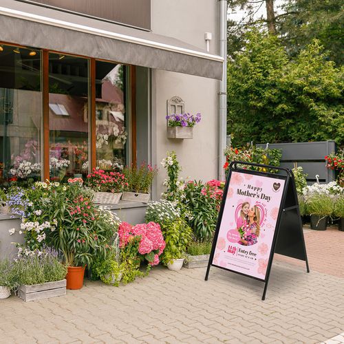 - Tablica A-Board Elegant Steel umożliwia szybką aktualizację treści dzięki magnetycznemu mocowaniu folii.