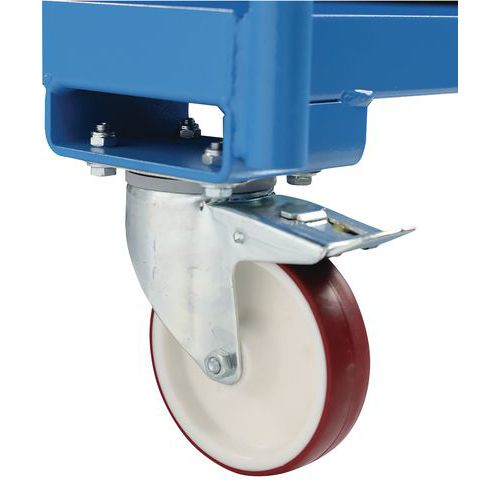 - Możliwość przemieszczania dzięki 2 nieruchomym i 2 skrętnym kółkom z hamulcem, o średnicy 125 mm.
