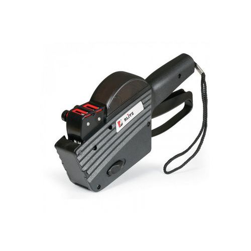 - Dwuwierszowa metkownica alfanumeryczna Blitz do nanoszenia metek. Etykiety z możliwością nadrukowania maks. 8 znaków w każdym wierszu. W górnym wierszu można wybrać cyfrę lub literę A–Z (bez znaków diakrytycznych). W dolnym wierszu znajduje się miejsce na 8 cyfr.