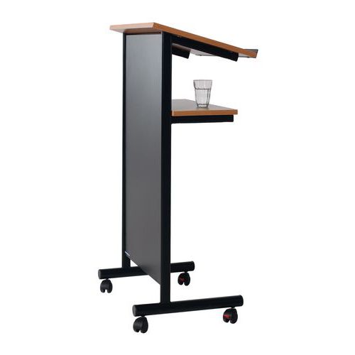 - Dzięki czterem kółkom mównicę można łatwo przemieszczać.