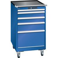Mobilna szafka warsztatowa z szufladami LISTA, 5 szuflad = 1x50 + 2x100 + 1x150 + 1x300 mm