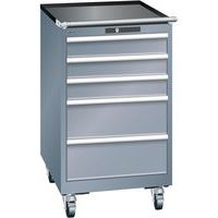 Mobilna szafka warsztatowa z szufladami LISTA, 5 szuflad = 3x100 + 2x200mm, 564x725x990mm, ciemnoszary