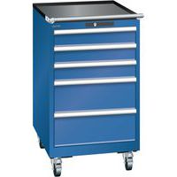 Mobilna szafka warsztatowa z szufladami LISTA, 5 szuflad = 3x100 + 2x200mm, 564x725x990mm, ciemnoniebieska