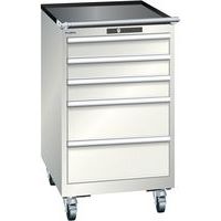 Mobilna szafka warsztatowa z szufladami LISTA, 5 szuflad = 3x100 + 2x200mm, 564x725x990mm, jasnoszary