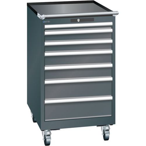 Mobilna szafka warsztatowa z szufladami LISTA, 7 szuflad = 1x50 + 2x75 + 2x100 + 2x150mm, 564x725x990mm