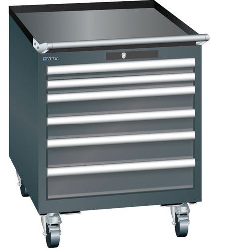 Mobilna szafka warsztatowa z szufladami LISTA, 564x725x723 mm, 6 szuflad, czarna