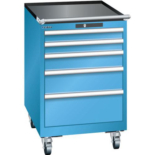 Mobilna szafka warsztatowa z szufladami LISTA, 564x725x890 mm, 5 szuflad, jasnoniebieska