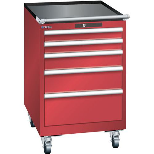 Mobilna szafka warsztatowa z szufladami LISTA, 564x725x890mm, 5 szuflad, czerwona