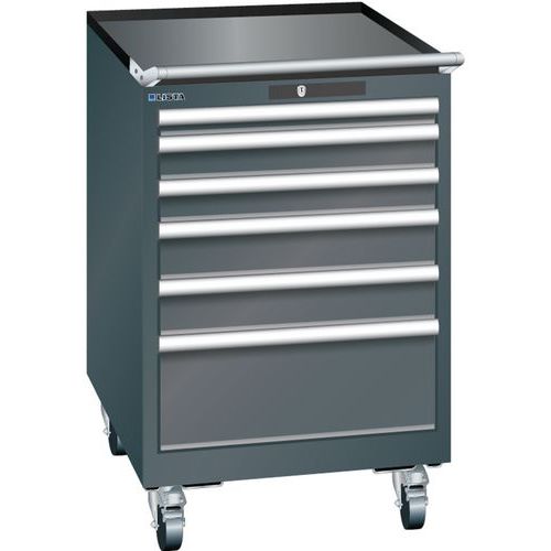 Mobilna szafka warsztatowa z szufladami LISTA, 564x725x890mm, 6 szuflad, czarna
