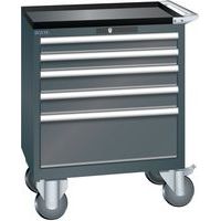Mobilna szafka warsztatowa z szufladami LISTA, 5 szuflad = 2x75 + 2x100 + 1x250mm, 717x572x962mm, czarna