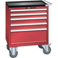 Mobilna szafka warsztatowa z szufladami LISTA, 5 szuflad = 2x75 + 2x100 + 1x250mm, 717x572x962mm, czerwona