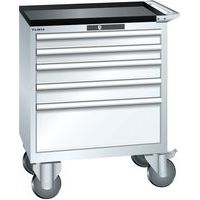 Mobilna szafka warsztatowa z szufladami LISTA, 5 szuflad = 2x75 + 2x100 + 1x250mm, 717x572x962mm, biała