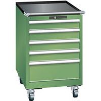 Mobilna szafka warsztatowa Lista, 5 szuflad: 4x100mm + 1x200mm, zielona Mobilna szafka warsztatowa Lista, 5 szuflad: 4x100mm + 1x200mm, zielona