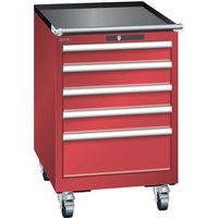 Mobilna szafka warsztatowa Lista, 5 szuflad: 4x100mm + 1x200mm, czerwona Mobilna szafka warsztatowa Lista, 5 szuflad: 4x100mm + 1x200mm, czerwona