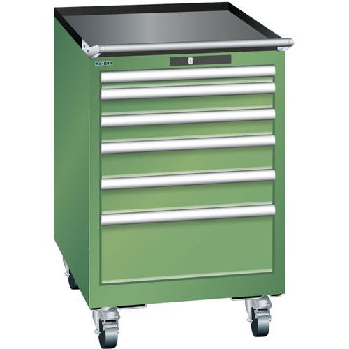 Mobilna szafka warsztatowa Lista, 6 szuflad: 2x75mm + 3x100mm + 1x150mm, zielona Mobilna szafka warsztatowa Lista, 6 szuflad: 2x75mm + 3x100mm + 1x150mm, zielona