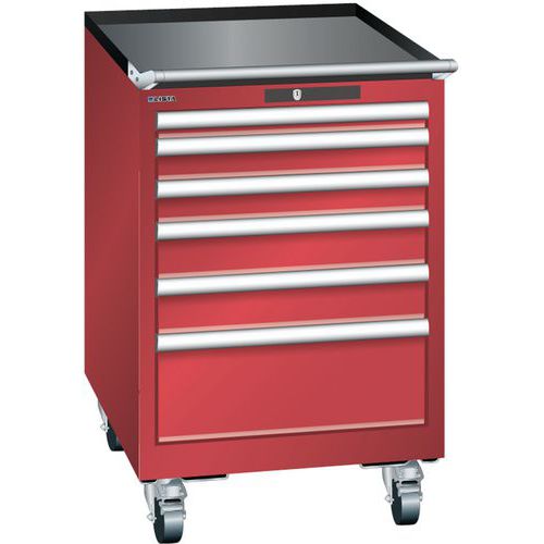 Mobilna szafka warsztatowa Lista, 6 szuflad: 2x75mm + 3x100mm + 1x150mm, czerwona Mobilna szafka warsztatowa Lista, 6 szuflad: 2x75mm + 3x100mm + 1x150mm, czerwona