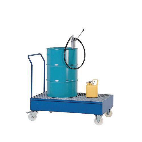 służą do bezpiecznego transportowania cieczy niebezpiecznych wewnątrz przedsiębiorstwa spełniają wymagania ustawy o ochronie wód nadają się do magazynowania cieczy łatwopalnych pojemność wychwytowa 60 l i 200 l pojemność 1 beczka 60 l – 2 beczki 200 l, w przypadku wersji na dwie beczki można składować również beczki leżące (np. w połączeniu z podporą do beczek) łatwa obsługa za pomocą uchwytu wyjmowana, ogniowo cynkowana kratka 2 stałe i 2 skrętne kółka wszystkie wanny posiadają certyfikat TUV Zalecenia dotyczące bezpieczeństwa:Meble ustawić na prostej i płaskiej powierzchni. Przytwierdzić go do ściany lub poprzeczki za pomocą odpowiedniego mocowania. Dbać o prawidłowe rozmieszczenie obciążenia i nie przekraczać maksymalnego dopuszczalnego obciążenia. Maks. obciążenie statyczne (kg) : 850
