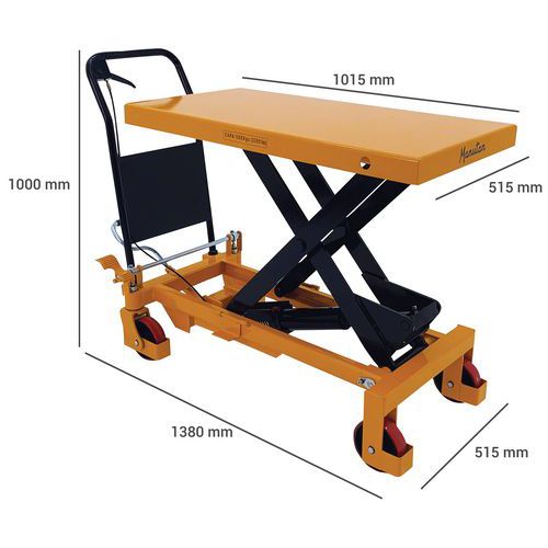 Mobilny hydrauliczny stół podnośnikowy Manutan Expert, do 1 000 kg, blat 101,5 x 51,5 cm