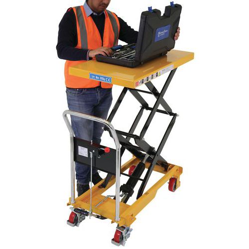 Mobilny hydrauliczny stół podnośnikowy Manutan Expert, do 350 kg, blat 90,5 x 50 cm Mobilny hydrauliczny stół podnośnikowy Manutan Expert, do 350 kg, blat 90,5 x 50 cm