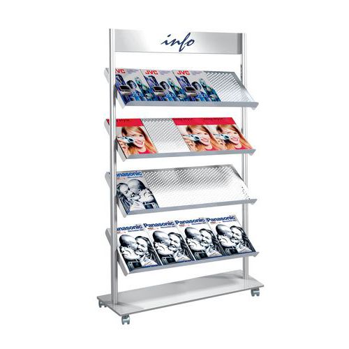 - Solidny mobilny stojak na broszury.