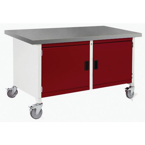 Mobilny stół warsztatowy Bott Cubio Storage, 84 x 150 x 75 cm, 2 szafki, linoleum, szaro-czerwony
