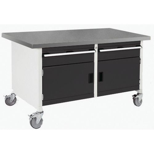 Mobilny stół warsztatowy Bott Cubio Storage, 84 x 150 x 75 cm, 2 szuflady, 2 szafki, linoleum, szaro-antracyt Mobilny stół warsztatowy Bott Cubio Storage, 84 x 150 x 75 cm, 2 szuflady, 2 szafki, linoleum, szaro-antracyt