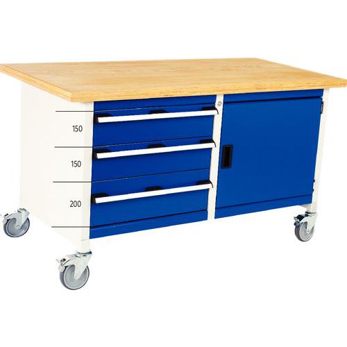 Mobilne stoły warsztatowe Cubio Storage z blatem tl. 4 cm typu multiplex lub linoleum.