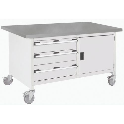Mobilny stół warsztatowy Bott Cubio Storage, 84 x 150 x 75 cm, 3 szuflady, szafka, multipleks/linoleum