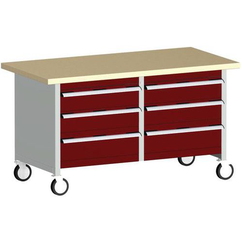 Mobilny stół warsztatowy Bott Cubio Storage, 84 x 150 x 75 cm, 6 szuflad, multipleks, szaro-czerwony Mobilny stół warsztatowy Bott Cubio Storage, 84 x 150 x 75 cm, 6 szuflad, multipleks, szaro-czerwony