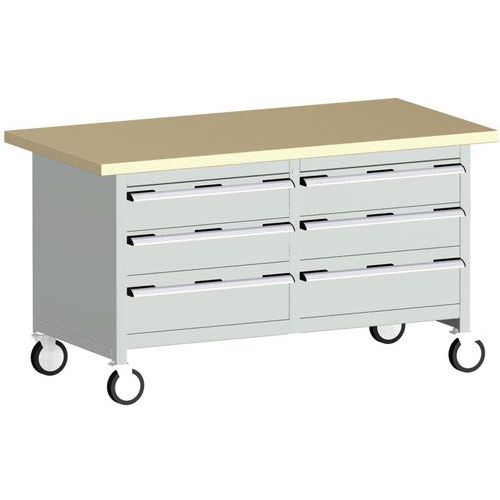 Mobilny stół warsztatowy Bott Cubio Storage, 84 x 150 x 75 cm, 6 szuflad, multipleks/linoleum