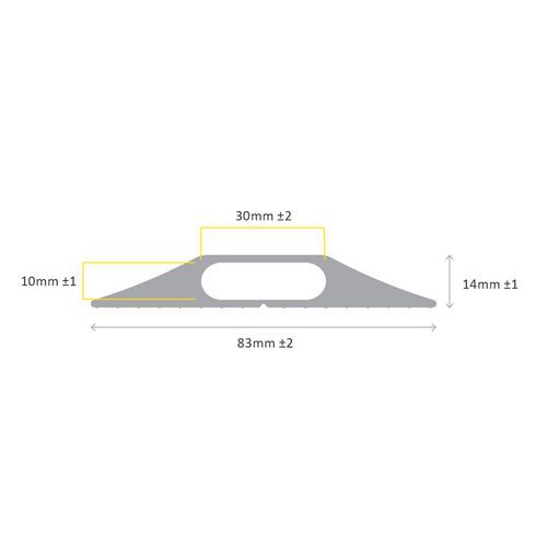 Uniwersalne ochraniacze kablowe do użytku wewnętrznego i zewnętrznego. Wariant z żółtą taśmą bezpieczeństwa zwiększa widoczność przejazdu. Obniżają ryzyko potknięcia o ułożone luzem kable. Zapobiegają niepożądanemu wyciąganiu czy uszkadzaniu kabli. Do układania kabli służy otwór wewnętrzny 10 x 30 mm. Wykonane w UK