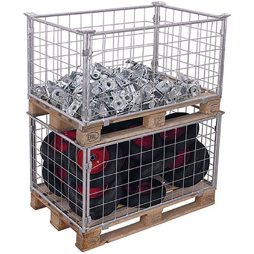 Składane nadstawki paletowe o konstrukcji z siatki o zamkniętych oczkach przeznaczone są do transportu i składowania towarów na paletach typu europalet.