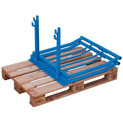 Składane nadstawki paletowe przeznaczone są do transportu i składowania towarów na paletach typu europalet. Rama z okrągłych rur z dwoma stabilnymi poprzeczkami i ściętymi wspornikami blokującymi na górnej poprzeczce gwarantuje dobrą stabilność. 1065018, 10650184, 10650029MR, 10650032MR można układać w stosy do maksymalnie 4 przedłużeń, inne warianty można układać w stosy do maksymalnie 3 przedłużeń.