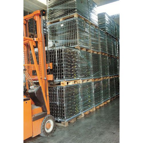 - Paletowe nadstawki siatkowe (oczko 65 x 120 mm) z częściowo pochylaną ścianą, są idealne do użytku zwłaszcza w magazynach.