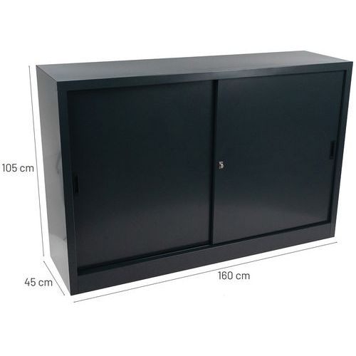 Niskie metalowe szafy aktowe Manutan Expert z drzwiami przesuwnymi, 160 x 105 x 45 cm