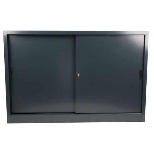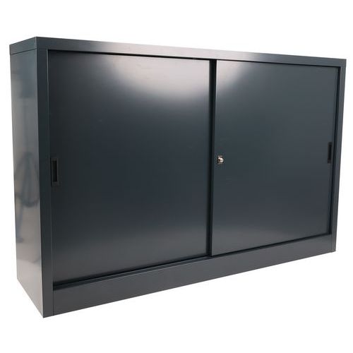 Niskie metalowe szafy aktowe Manutan Expert z drzwiami przesuwnymi, 180 x 105 x 45 cm