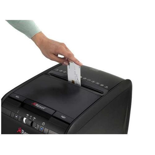 - Niszczarka Rexel Auto+ 60X z automatycznym podawaniem do 60 arkuszy papieru. Niszczy w przekroju 4 x 50 mm do 5 kartek papieru.
